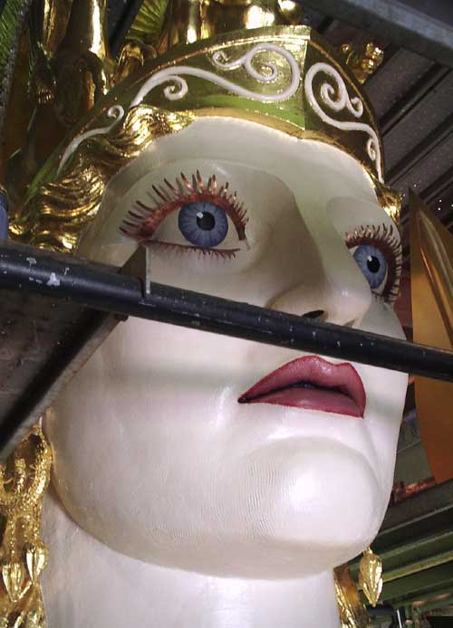 Athena's face, now further developed by Alan (who seems to have a flair for makeup!!). Her eyes have been painted in, as well as her lips and nostrils. Notice the exquisite ivory color of her skin, thanks to Jenny Gill and her painting crew. |